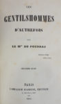 FOUDRAS (Théodore de). Les Gentilshommes chasseurs. Paris, Émile Nourry - Librairie Cynégétique, 1932. Petit in-4°, demi-chagrin brun à coins, dos à nerfs orné, tête dorée, couverture illustrée conservée (reliure de l’époque). 47...
