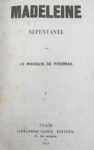FOUDRAS (Théodore de). Jacques de Brancion. Paris, Alexandre Cadot, Éditeur, 1849. 5 volumes in-8°, demi-veau noir, dos lisse orné d’un décor romantique (reliure de l’époque). ÉDITION ORIGINALE. Envoi de l’auteur sur le titre. Accident...