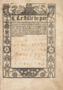 ♦Très rare édition gothique de ce manuel judiciaire décrivant les procédures et requêtes qui se déroulaient au parlement de Paris, la plus haute instance du royaume chargée de rendre la justice au nom du Roi.