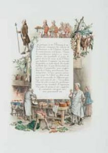 s’ajoute une plaque rocaille dorée, dos à nerfs très orné, dentelle intérieure avec doublures de maroquin caramel et gardes de soie brochée à motifs de fleurs, tête dorée, étui (Durvand). Remarquable suite de 87 planches en couleurs avec texte gravérésumant les occupations d’une dame de qualité sous l’Ancien Régime : toilette, jeux, musées, bals, dîners, parties de campagne, emplettes, etc. Les reproductions des aquarelles par Boussod-Valadon, maison spécialiste de cette technique, sont de toute beauté. "Très belle publication, très cotée (…). Une des meilleures illustrations de Maurice Leloir. [Elles] représentent (…) des scènes gracieuses et fidèles, constituant une remarquable documentation sur le XVIIIe siècle au point de vue des costumes comme de l’ameublement et de la décoration" (Carteret, Trésor du Bibliophile, IV, p.237). Tirage à 200 ex., tous numérotés et tirés sur beau vélin très fort. Splendide et luxueux exemplaire relié en maroquin bleu roi décoré de Durvand.