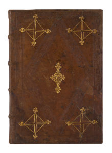 figurant une croix et bordés de fleurs de lis aux extrémités, dos orné (Reliure espagnole du XVIe siècle).