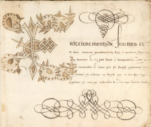 Les premiers recueils d’exemples d’écriture manuscrite conservés datent du XVe siècle. […] Les textes destinés à exercer la main de l’élève ou à montrer l’habileté du maître sont très divers. On trouve des fragments de psaumes, des moralités, des proverbes, des textes galants, des textes vantant les qualités du maître qui les a tracés, des formules de chancellerie, etc. [...] (Jean Hébrard, « Des écritures exemplaires : l’art du maître écrivain en France entre XVIe et XVIIIe siècle »
