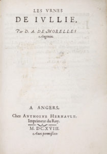 AUBIN (David, Sieur de Morelles). — Les Urnes de Jullie [sic]. — Angers, Antoine Hernault, 1618. — In-4, maroquin citron, décor à la Du Seuil, dos orné (Reliure pastiche moderne).