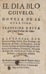 GUEVARA (Luis Velez de). — El diablo cojuelo. — Novela de la otra vida. — Madrid, Aloso Perez, 1641. — Petit in-8, vélin, titre à l’encre au dos, tranches mouchetées (Reliure de l’époque).