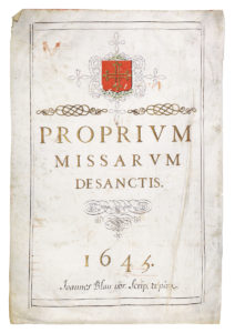 PAGE DE TITRE MANUSCRITE D’UN MISSEL. — 1645. — Une feuille grand in-folio (environ 70 x 50 cm).