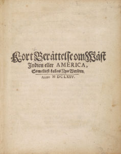 [HEMMERSAM (Michael)]. — Kort Berättelse om Wäst-Indien eller America, som elliest kallas Nya Werlden. — S.l.n.n. [Château de Wisingsborg, Johannes Kankel ?], 1675. — In-4, demi-vélin avec coins, pièce de titre en long au dos (Reliure du...