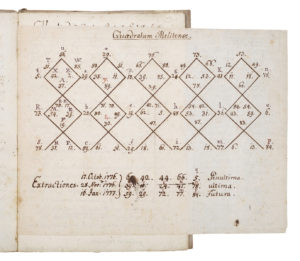 Description et mode d’emploi d’un « carré magique mathématique » appelé Quadratum Melitense, accompagnée d’une planche manuscrite le représentant.
