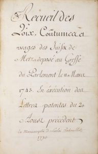 Au début du XVIIIe siècle, le Parlement de Metz commençait à juger directement des affaires de « juif à juif » : il le faisait par principe et pour étendre ses droits et privilèges sur toute la population de son ressort, sans distinction de culte. [...] Mais si les tribunaux ordinaires et le Parlement devaient connaître des affaires civiles des Juifs, comme étant la seule juridiction légale, les juges royaux n’en devaient pas moins rendre leur sentence en conformité des lois, coutumes et usages des Juifs, et c’est là que surgissait une très grande difficulté : les juges n’avaient aucun guide pour les jugements à rendre en pareille matière. [...] Les tribunaux étaient donc le plus souvent obligés de recourir à des consultations qu’ils demandaient aux rabbins. Pour s’affranchir de cette nécessité, le Parlement de Metz ordonna que les « chefs élus ou syndics des Juifs de Metz feraient établir un recueil, en langue française, des lois, coutumes et usages qu’ils observent en ce qui concerne leurs contrats de mariage, leurs tutelles, curatelles, majorités, l’ordre de leurs successions tant directes que collatérales, les testaments et autres matières civiles ». [...] Le 11 mars, les élus de la Communauté firent le dépôt du recueil de leurs lois et coutumes, texte hébreu et traduction française. Le Parlement, ayant examiné ce travail, trouva qu’il ne pouvait être utilisé que fort difficilement par des personnes peu habituées aux méthodes de la casuistique juive. Pour le mettre à la portée des tribunaux et des gens de justice, il chargea un de ses membres les plus distingués, M. Lançon, de le refondre et d’une faire un recueil méthodique facile à consulter. Ce second travail fut déposé au greffe et utilisé dans toutes les affaires juives. De nombreuses copies en furent faites et circulèrent dans la ville jusqu’en 1786 [époque à laquelle il fut imprimé] (Ab. Cahen, « Le rabbinat de Metz pendant la période française » in Revue des études juives, t. XII, n°24, 1886).