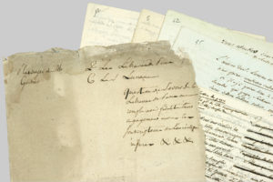 pages, en feuilles, conservé sous un fragment de placard de l’époque plié en deux.