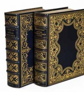 Nolhac Pierre de. François Boucher, premier peintre du Roi. Paris, Goupil, 1907 ; fort vol. in-4 maroquin bleu azur, filets et large dentelle dorés en encadrement sur les plats, dos à nerfs orné, dentelle intérieure, doubles gardes, tête dorée