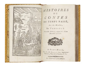PERRAULT (Charles). — Histoires ou Contes du temps passé. — Avec Moralités. — Nouvelle édition, augmentée d’une Nouvelle à la fin. — Port-Malo, L.-H. Hovius, An VII de la République [1799]. — In-12, VIII et 171 pages, maroquin...