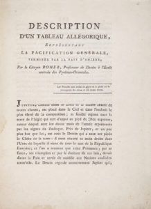 BOHER (François). — Description d'un Tableau allégorique représentant la pacification générale terminée par la paix d'Amiens. — [À la fin] : Perpignan, De l'Imprimerie de Pourtet et Ay, s.d. [c. 1805]. — Plaquette in-4 de 12 pages,...