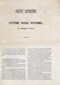OWEN (Robert). — Courte exposition d’un système social rationnel. — S.l.n.d. [à la fin] : [Paris], Imprimerie de Marc-Aurel, [1848]. — Brochure in-folio de 6 pages, en feuilles.