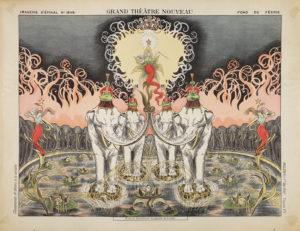 Entre 1840 et 1905 les imageries de l’Est de la France créèrent de nombreuses feuilles de décor de théâtre. Les plus anciens théâtres de papier d’Épinal apparaissent vers 1840 sous forme de figures à découper et à coller sur carton pour construire des théâtres miniatures. Le Grand théâtre nouveau publié par Pellerin à la fin du XIXe siècle marque l’aboutissement de ces théâtres fragiles qui cherchaient à émerveiller les enfants et à éveiller leur imagination.
