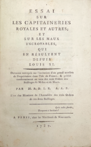 [BOUCHET DE LA RICHARDIERIE (Gilles)] — Essai sur les capitaineries royales et autres ; et sur les maux incroyables, qui en résultent depuis Louis XI…