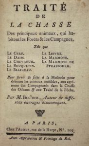 BUC’HOZ (Pierre-Joseph) — Traité de la chasse des principaux animaux, qui habitent les forêts & les campagnes…