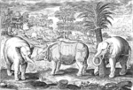 [Anvers], vers 1612. In-12 oblong, 22,5 x 16,5 cm, titre et 19 pl., papier rosé à la Bradel (cartonnage moderne). Rare suite des quadrupèdes (éléphants, rhinocéros, cerfs, lions, sanglier, ours, lapins, singes, chevaux, etc.) d’Adrien Collaert le jeune, gendre et élève de Philippe Galle, avec 7 scènes de chasse au second plan.
