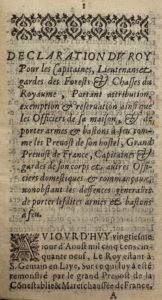 Déclaration du roy pour les capitaines, — lieutenant et gardes des forest & chasses du royaume, portant attribution, exemption & reservation… de porter armes & bastons à feu…