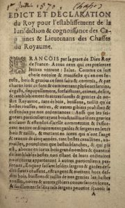 Édict et déclaration du roy — pour l’établissement de la juridiction & cognoissance des capitaines & lieutenans des chasses du royaume.