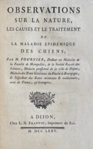 FOURNIER (Jean) — Observations sur la nature, les causes et le traitement de la maladie épidémique des chiens.