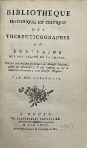 LALLEMANT (Richard-Gontran, Nicolas & Richard-Xavier) — Bibliothèque historique et critique des théreuticographes ou écrivains qui ont traité de la chasse…