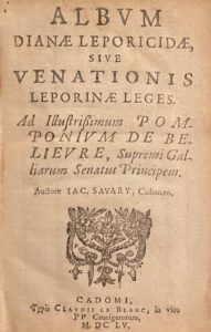 SAVARY (Jacques) — Album Dianæ leporicidæ, sive Venationis leporinæ leges.