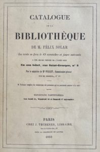[BIBLIOGRAPHIE] — Catalogue de la bibliothèque de M. Félix Solar.