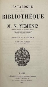 [BIBLIOGRAPHIE] — Catalogue de la bibliothèque de M. N. Yemeniz…