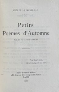 LA MARTILLE (Jean de) — Petits poèmes d’automne.