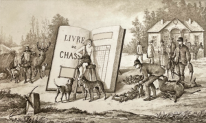 Paris, Gustave Boscher, [1886]. In-folio oblong, 51 x 37 cm, 25 ff., demi-chagrin brun avec coins, dos à nerfs (Lenègre). Luxueux album destiné à accueillir les tableaux de chasse. Tiré à petit nombre.