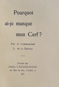 LA BASTIDE (Louis de) — Pourquoi ai-je manqué mon cerf ? — Pourquoi ai-je manqué mon chevreuil ?