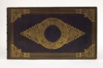 [ALBUM]. Album contenant les plus belles vignettes et gravures anglaises modernes, des vues de monuments, de paysages, d'architecture, de portraits, etc. Cette collection est ornée avec le plus grand soin ; et les nombreuses gravures qui la composent, sont toutes sur papier de chine, la plupart avant la lettre. 1837. Album infolio oblong (319 x 552 mm) d'un faux-titre aux initiales CDL, d'un titre calligraphié à l'encre bleu, au crayon, et à l'or dans de filets dorés et à l'encre bleu et signé en bas à droite ‘Girard fécit 1837', 81 feuilles comportant chacune entre 1 et 3 gravures. Maroquin aubergine, plats ornés d'un riche décor romantique à la cathédrale, dos à nerfs orné, tranches dorées, gardes et doublures de soie verte (reliure de l' époque).