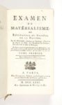 BERGIER, Nicolas Examen du matérialisme : ou Réfutation du système de la nature. Paris, chez …
