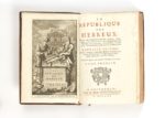 [CUNEUS, Pierre] La République des hébreux. Où l'on voit l'origine de ce peuple, ses loix... Nouvelle édition, revue, corrigée, augmentée de deux tomes par Jacques Basnage. Amsterdam, frères