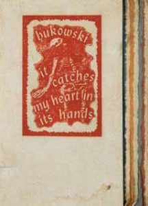 Bukowski Charles. It catches my heart in its hands. Nouvelle Orléans, Loujon, 1963; in-8 de 97 pp. broché, couverture volontairement plus courte de la marge extérieure pour laisser apparaître les papiers de couleur.