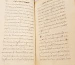 Très joli manuscrit, orné d'un beau titre dans un encadrement à la plume, et de 6 vignettes et 6 initiales finement dessinées et coloriées à l'époque. Bel exemplaire.