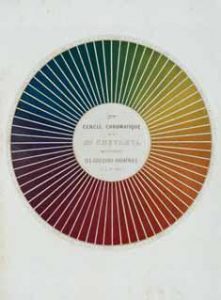 Chevreul Michel. Exposé d’un moyen de définir et de nommer les couleurs d’après une méthode précise et expérimentale... Paris, Firmin Didot frères, fils et Cie, 1861 ; 2 vol. 1 grand in-4 de texte de [3] ff., lxxiij-937 pp et un atlas