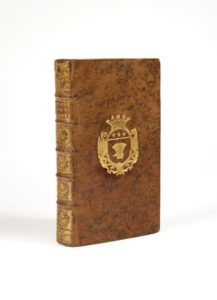In-12 (165 x 93 mm) de 2 ff.n.ch., 4pp. d'explication des planches), 3 ff.n.ch., 328, 16 pp., 3 planches dépliantes gravées. Veau marbré, armoiries centrales de Fauconnet de Vildé (OHR 1654), dos à nerfs orné, tranches rouges (reliure de l' époque).