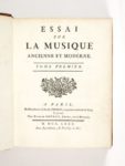 LA BORDE, Jean-Benjamin de Essai sur la musique ancienne et moderne. Paris, imprimerie de Ph.-D. Pierres et chez Eugnène Onfroy, 1780. 4 volumes in-4 (249 x 192 mm) de 2 ff.n.ch., 5 pp., 1 f.n.ch., pp.
