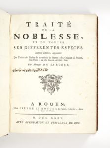 LA ROQUE DE LA LONTIERE, Gilles-André de Traité de la noblesse, et de toutes ses différentes espèces. Nouvelle édition, augmenté des traitéz de Blason des armoiries de France. Rouen, Pierre