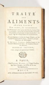 Seconde édition du célèbre ouvrage de Louis Lémery (1677-1743), fils du célèbre chimiste Nicolas Lémery. Divisé en trois parties (végétaux, animaux et boissons) l'auteur y décrit tous les aliments consommés sous Louis XIV : fruits, pain, épices et condiments, poissons et viandes, etc. Lémery «fait souffler un esprit de renouveau sur le savoir diététique de son temps» (Livres en bouche).