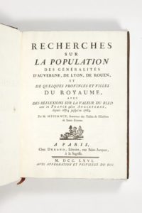 Cet important traité sur la démographie française précède celui de Malthus (On Population, Londres 1798) de plus de 30 ans.