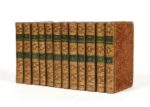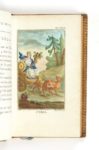 [MILLIN DE GRANDMAISON, Aubert Louis] La Mythologie mise à la portée de tout le monde, orné de cent figures, en couleurs, ou en noir. Nouvelle édition. Paris, imprimerie Didot le jeune pour Deterville, An septième [1799]. 12 volumes in-12 (134 x 80 mm) de 176 pp., 23 planches gravées et coloriées pour le volume I ; 2 ff.n.ch., 172pp. 18 planches gravées et coloriées pour le volume II ; 2 ff.nch., 175 pp., 12 planches gravées pour le volume III ; 2 ff.n.ch., 146 pp., 5 planches gravées et coloriées pour le volume IV ; 2 ff.n.ch., 191 pp., 6 planches gravées et coloriées pour le volume V ; 2 ff.n.ch., 175 pp., 8 planches gravées pour le volume VI ; 2 ff.n.ch., 164 pp., 4 planches gravées et coloriées pour le volume VII ; 2 ff.n.ch., 187 pp., 8 planches gravées et coloriées pour le volume VIII ; 2 ff.n.ch., 176 pp., 2 planches gravées et coloriées pour le volume IX ; 2 ff.n.ch., 190 pp., 8 planches gravées et coloriées pour le volume X ; 2 ff.n.ch., 169 pp., 2 planches gravées et coloriées pour le volume XI ; 2 ff.n.ch., 151 pp., 4 planches gravées et coloriées pour le volume XII. Veau porphyre, roulette dorée d'encadrement dos lisse orné, tranches dorées (reliure de l' époque).