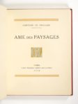 NOAILLES, Anna, princesse Brancovan, comtesse de Ame des paysages. Paris, Cent Femmes Amies de Livres, 1928. In-4 (253 x 197 mm) de 4 ff.n.ch., 103 pp., 3 ff.n.ch., 22 compositions d'Anna de Noailles dont 5 hors texte. Box vieux rose, plats ornés d'un décor simple de pointillé sur les bords (gauche et droit), dos lisse inspiré du même décor et avec le titre doré, tête dorée, couverture et dos (muet) conservé, étui assorti (J. Rabaud).