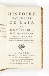 RICHARD, Jérôme, dit l'abbé Histoire naturelle de l'air et des météores. Paris, chez Saillant …
