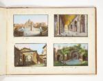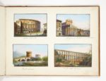 (230 x 310 mm) de 12 feuilles contenant 48 vues de Rome (118 x 77 mm) coloriées et toutes (sauf 2) légendées à la main à l'époque.
