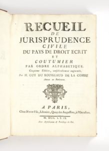 ROUSSEAU DE LA COMBE, Guy du Recueil de jurisprudence civile du pays de droit écrit et coutumier par ordre alphabétique.