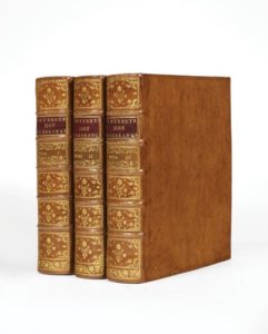 ROUSSET, Jean Les Intérêts présens et les prétentions des puissances de l'Europe, fondez sur les traitez depuis ceux d'Utrecht inclusivement. La Haye, Adrien Moetjens, 1736. 3 volumes in-4 (246 x 194 mm) de XXIV, 1017 pp. pour le volume I ; 2 ff.n.ch. (le premier blanc), 816 pp., 7 ff.n.ch. pour le volume II ; 4 ff.n.ch., 879 pp., 18 ff.n.ch., pour le volume III. Veau glacé, dos à nerfs orné, tranches rouges (reliure de l' époque).