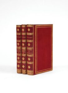 VOLTAIRE, Francois Marie Arouet, dit Histoire de l'empire de Russie sous Pierre la Grand. Édition stéréotype. Paris, Pierre et Firmin Didot, An XI (1803). 3 volumes in-12 (156 x 95 mm) de 230 pp. pour le volume I ; 223 pp. pour le volume II. Maroquin rouge à grain long, roulettes dorées d'encadrement, dos lisse orné, tranches dorées (reliure de l' époque).