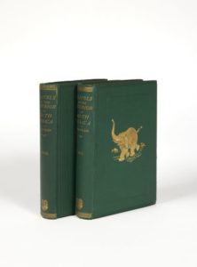 Stanford, 1868. 2 volumes in-8 (220 x 145 mm) de XIII pp. 1 f.n.ch., 454 pp., 3 planches hors texte, 1 grande carte dépliante hors texte pour le volume I ; VIII, 480 pp., 3 planches et 1 grande carte dépliante. Percaline verte, plat supérieur orné d'un fer spécial illustrant un éléphant, dos lisse (reliure de l' éditeur).